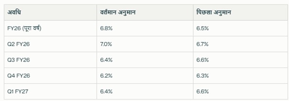 विभिन्न तिमाहियों के लिए भी अनुमान में बदलाव किया गया है। Q2 FY26 के लिए GDP ग्रोथ का अनुमान 6.7% से बढ़ाकर 7% किया गया है। हालांकि, Q3 में पहले के 6.6% से इसे घटाकर 6.4% कर दिया गया है और Q4 के लिए भी अनुमान 6.3% से घटाकर 6.2% किया गया है। इस तरह, आरबीआई ने आर्थिक वृद्धि की दिशा में सकारात्मक संकेत देते हुए तिमाही आधारित सुधार और जोखिम का संतुलन दोनों ध्यान में रखा है।