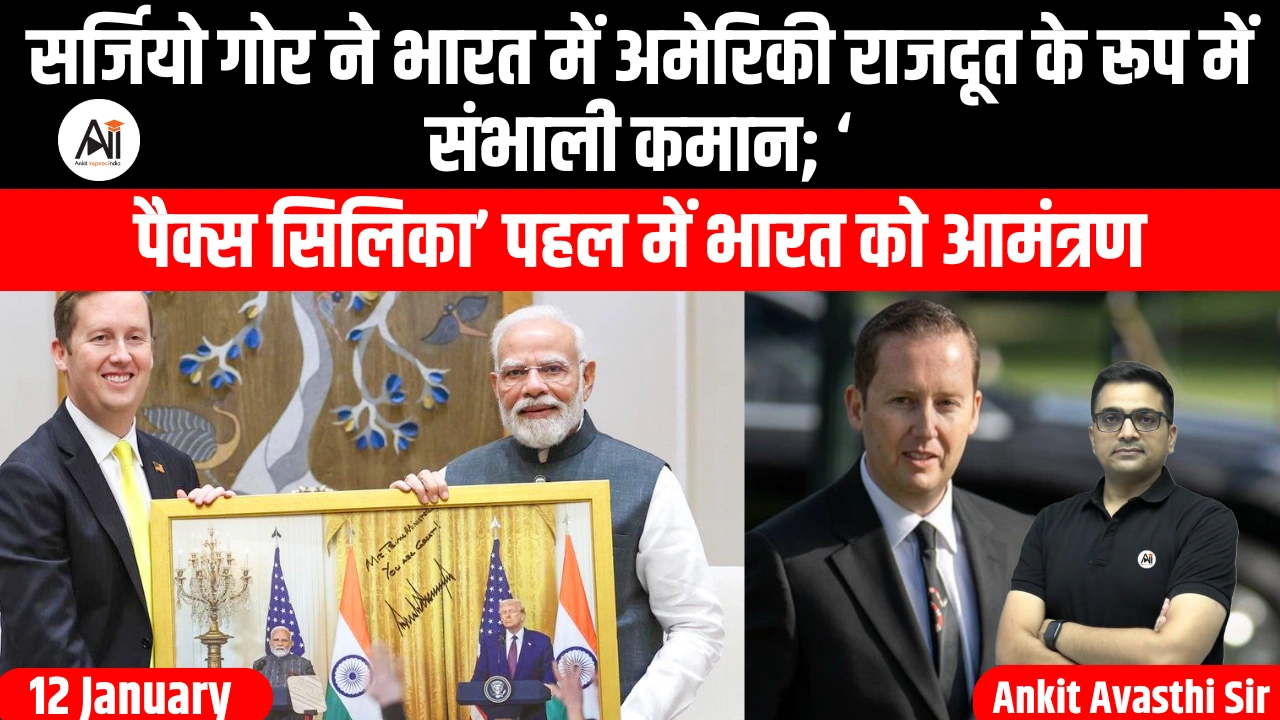 12 जनवरी 2026 को अमेरिका के नए राजदूत सर्जियो गोर ने भारत में अपने दूतावासीय कार्यभार का औपचारिक तौर पर भार संभाल लिया। उन्होंने नई दिल्ली में अपने पहले संबोधन में कहा कि भारत-अमेरिका रिश्ते इस सदी के सबसे महत्वपूर्ण वैश्विक साझेदारी हैं और दोनों देश कई क्षेत्रों में मजबूत सहयोग जारी रखेंगे। इसी के साथ उन्होंने एक अहम घोषणा की कि भारत को अमेरिकी नेतृत्व वाली नई रणनीतिक पहल “पैक्स सिलिका” में पूर्ण सदस्य के रूप में शामिल होने के लिए आमंत्रित किया जाएगा।