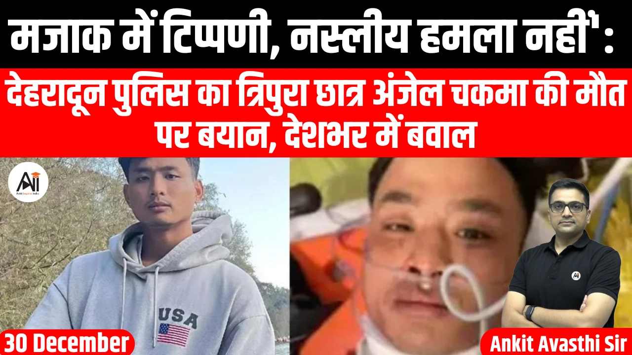 त्रिपुरा के 24 वर्षीय एमबीए छात्र एंजेल चकमा की 26 दिसंबर को देहरादून के एक अस्पताल में मृत्यु हो गई। वे 9 दिसंबर को हुए हमले के बाद से 17 दिनों तक उपचाराधीन थे। उनकी मौत ने पूर्वोत्तर राज्यों के लोगों के साथ होने वाले नस्लीय भेदभाव की बहस को फिर से जीवंत कर दिया है।