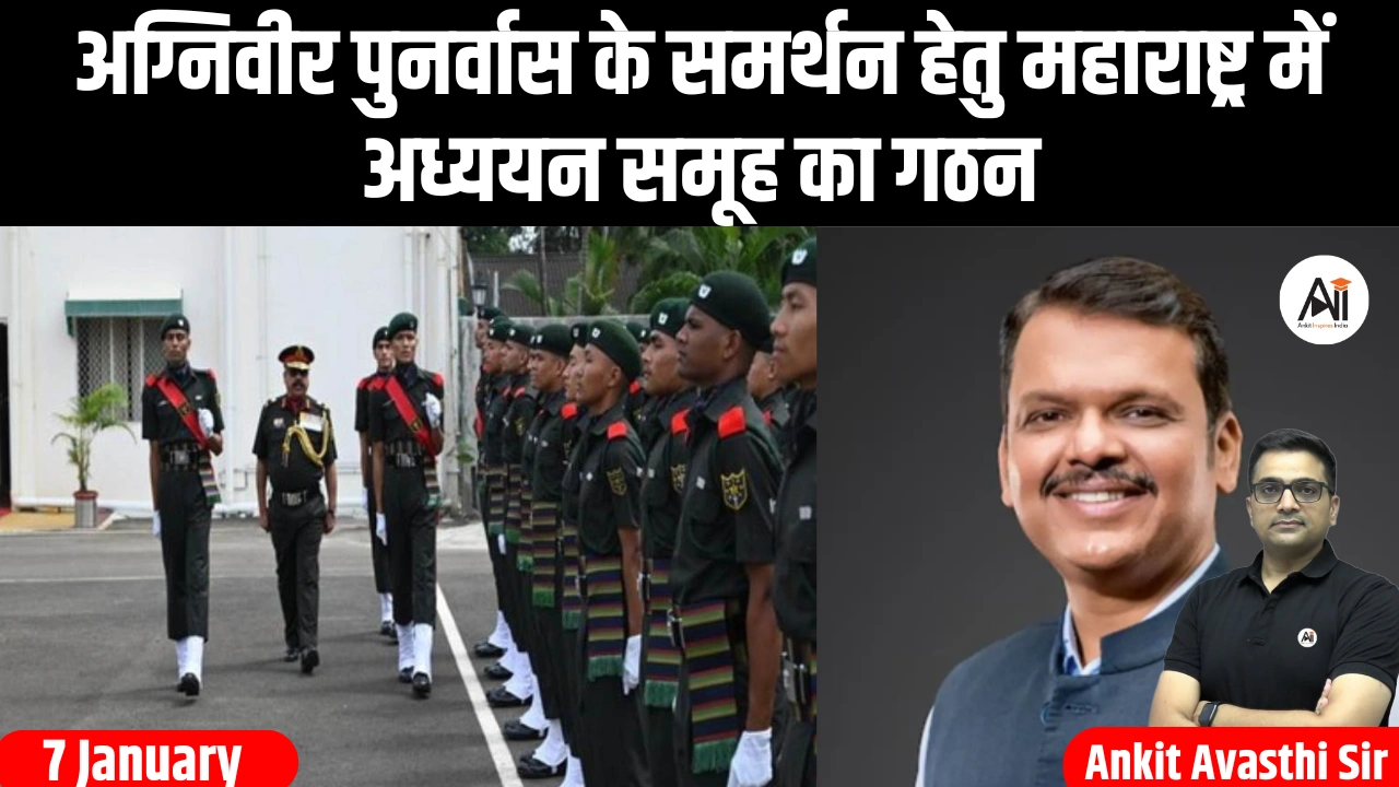 - महाराष्ट्र सरकार ने जनवरी 2026 में एक विशेष अध्ययन समूह का गठन किया है, जिसका उद्देश्य अग्निपथ योजना के तहत चार साल की सेवा पूरी करने वाले अग्निवीरों के पुनर्वास के लिए व्यवस्थित समाधान तैयार करना है। यह पहल किसी भी राज्य सरकार द्वारा की गई पहली और संरचित कोशिश है।