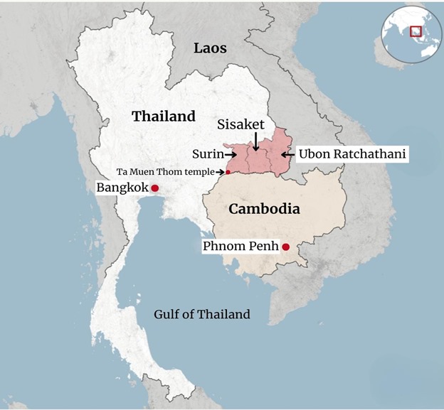 थाईलैंड और कंबोडिया के मध्य सीमा विवाद 118 वर्ष पुराना है। इसका केंद्रबिंदु प्रीह विहियर और ता मुएन थॉम जैसे प्राचीन मंदिर हैं, जो दोनों राष्ट्रों की सीमाओं के अत्यधिक समीप स्थित हैं।