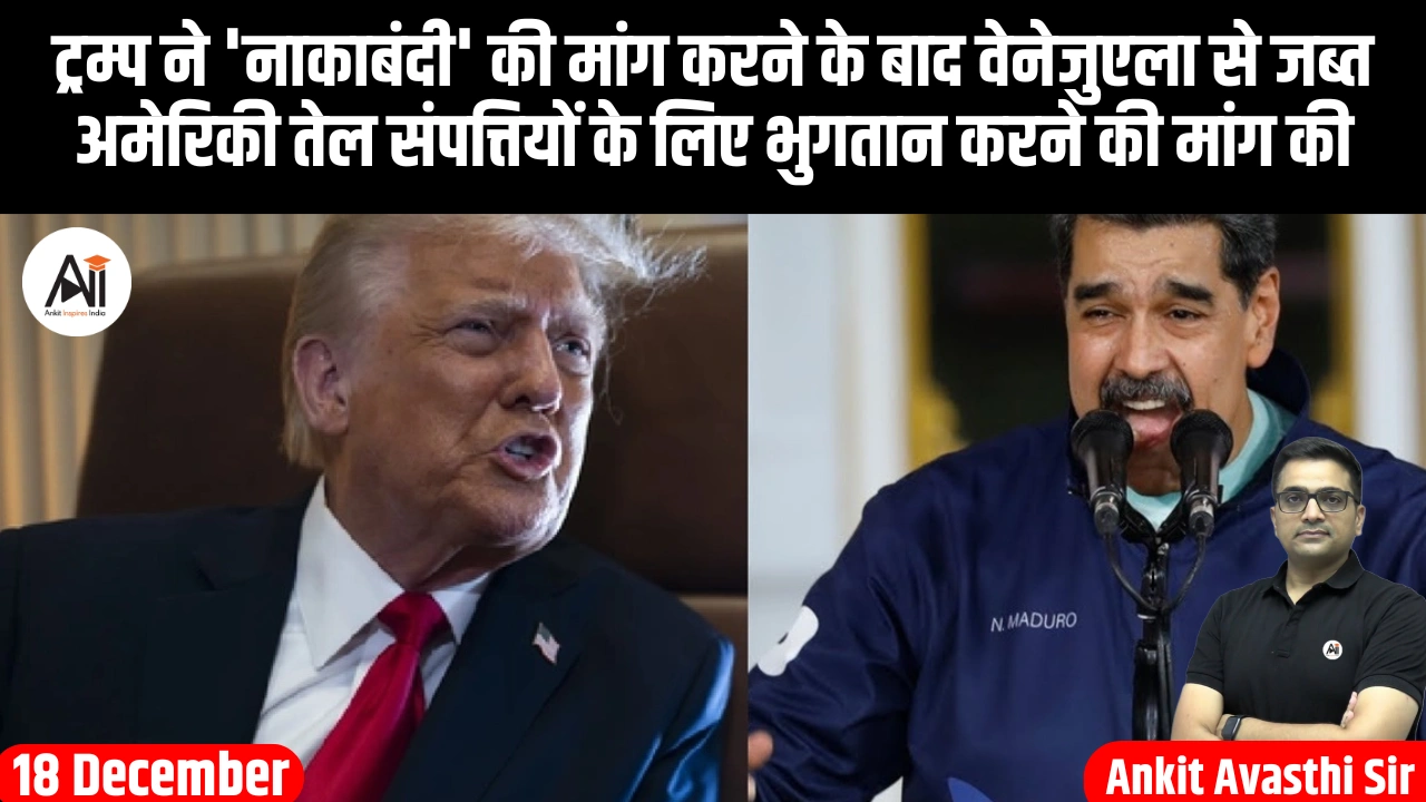 अमेरिकी राष्ट्रपति डोनाल्ड ट्रम्प ने बुधवार को वेनेजुएला से मांग की कि वह उन संपत्तियों को लौटाए जो उसने वर्षों पहले अमेरिकी तेल कंपनियों से जब्त की थीं। ट्रम्प ने दक्षिण अमेरिकी देश से या उसकी ओर जाने वाले तेल टैंकरों के खिलाफ “नाकाबंदी” की घोषणा को नए सिरे से उचित ठहराया, जो अमेरिकी प्रतिबंधों का सामना कर रहे हैं।