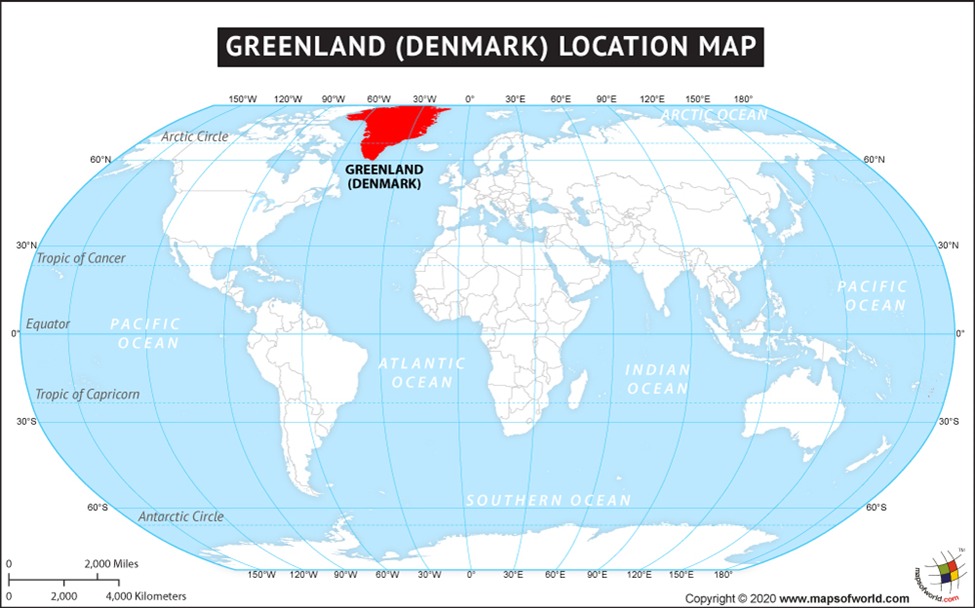 भौगोलिक दृष्टि से ग्रीनलैंड दुनिया का सबसे बड़ा द्वीप है, जो उत्तरी अटलांटिक महासागर में स्थित है। यहां अंटार्कटिका के बाद दुनिया की दूसरी सबसे बड़ी हिम-चादर (आइस शीट) पाई जाती है। यह ध्रुवीय क्षेत्र में आता है, जहां सर्दियों में तापमान -50 डिग्री सेल्सियस तक गिर सकता है और गर्मियों में तापमान आमतौर पर 10–15 डिग्री सेल्सियस से अधिक नहीं होता। ग्रीष्म ऋतु में यहां 24 घंटे सूर्य का प्रकाश रहता है, जिसे ‘मिडनाइट सन’ की घटना कहा जाता है।