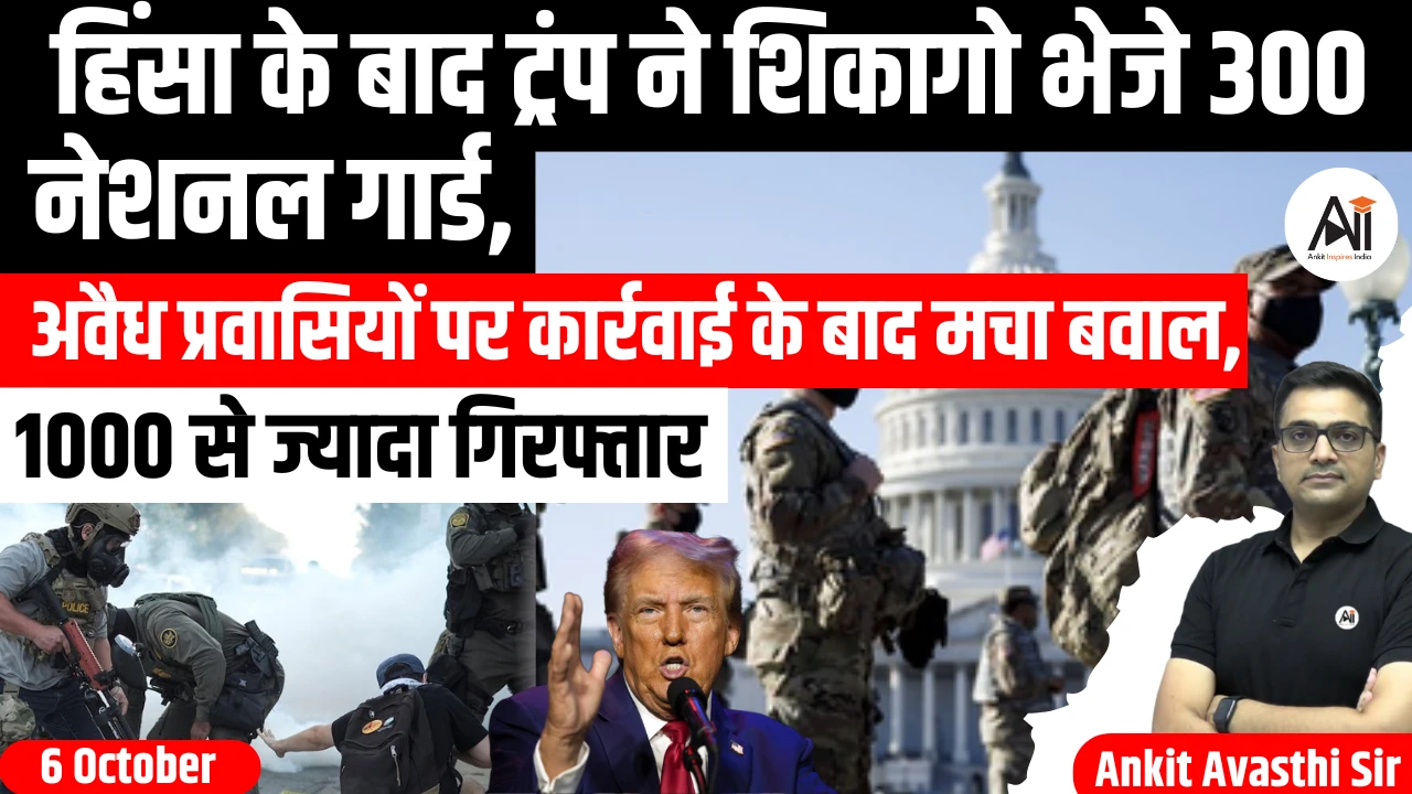 अमेरिका में अवैध प्रवासियों के खिलाफ चलाए जा रहे एक विशेष अभियान के कारण शिकागो शहर में स्थिति काफी तनावपूर्ण हो गई है। बीते रविवार को अमेरिकी राष्ट्रपति डोनाल्ड ट्रंप ने शहर में 300 नेशनल गार्ड्स तैनात किए, जिसके बाद प्रदर्शनकारियों और सुरक्षा बलों के बीच कई जगहों पर तीव्र झड़पें हुईं। इन झड़पों में सुरक्षा बलों ने पेपर स्प्रे और रबर बुलेट्स का इस्तेमाल किया, जिससे कई लोग घायल हुए और करीब 1000 से अधिक प्रदर्शनकारियों को हिरासत में लिया गया।