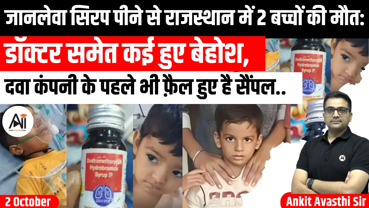 राजस्थान में बीते दिनों दो बच्चों की मौत और कुछ अन्य के बीमार पड़ने की घटनाओं ने हड़कंप मचा दिया है। आशंका जताई जा रही है कि इसका संबंध राज्य सरकार की ओर से आपूर्ति किए गए एक जेनेरिक कफ सिरप(DEXTROMETHORPHAN HBr Syrup IP 13.5 mg/5ml) से हो सकता है, जिसे सरकारी स्वास्थ्य केंद्रों के जरिए बांटा गया था।