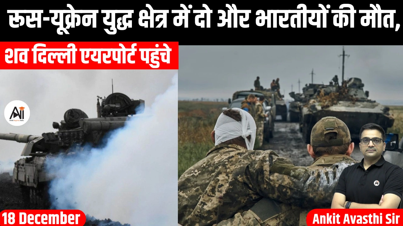 बुधवार (17 दिसंबर 2025) को रूस-यूक्रेन संघर्ष क्षेत्र में मृत्यु को प्राप्त हुए दो भारतीय नागरिकों के पार्थिव शरीर दिल्ली के हवाई अड्डे पर पहुंचे। सितंबर माह से अब तक युद्ध के मैदान में कम से कम चार भारतीयों की जान जा चुकी है, जबकि 59 अन्य लोग अभी भी लापता हैं।
