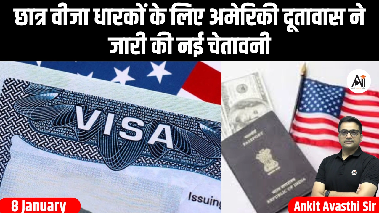 हाल ही में, अमेरिकी दूतावास ने एफ-1 वीज़ा धारकों या इसके लिए आवेदन करने वाले छात्रों के लिए एक महत्वपूर्ण चेतावनी जारी की है। अमेरिका ने छात्र वीज़ा धारकों को याद दिलाया है कि संयुक्त राज्य अमेरिका में प्रवेश एक विशेषाधिकार है, अधिकार नहीं। संघीय या राज्य कानूनों का उल्लंघन करने पर वीज़ा रद्द किया जा सकता है और स्थायी यात्रा प्रतिबंध लगाया जा सकता है।