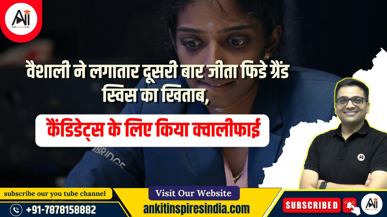 यह जीत इसलिए और खास है क्योंकि टूर्नामेंट के छोटे से इतिहास में पहली बार किसी खिलाड़ी ने ग्रैंड स्विस खिताब दूसरी बार अपने नाम किया है। इस उपलब्धि के साथ वैशाली, कोनेरू हम्पी और दिव्या देशमुख के बाद कैंडिडेट्स के लिए जगह बनाने वाली भारत की तीसरी महिला खिलाड़ी बन गई हैं। इस प्रतियोगिता में शामिल भारतीयों में से कोई भी पुरुष “कैंडिडेट्स” में जगह नहीं बना सका.