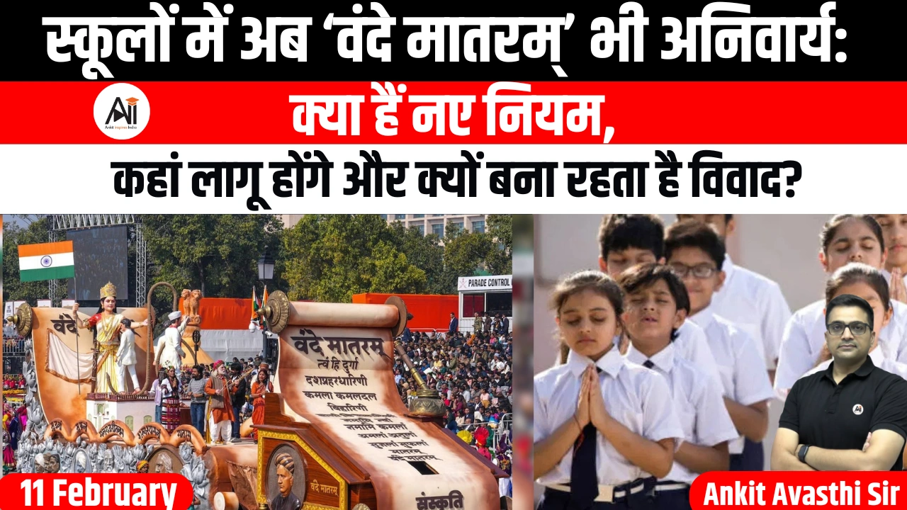 देश में राष्ट्रीय गीत ‘वंदे मातरम्’ को लेकर केंद्र सरकार ने 28 जनवरी 2026 को नए दिशा-निर्देश जारी किए हैं। इन निर्देशों के अनुसार अब स्कूलों में ‘जन गण मन’ से पहले ‘वंदे मातरम्’ भी गाया जाएगा। इसके सभी छह पद (स्तंभ) गाए जाएंगे, जिन्हें पूरा करने में लगभग 190 सेकंड का समय लगेगा। गृह मंत्रालय द्वारा जारी इन नियमों में यह भी स्पष्ट किया गया है कि किन अवसरों पर यह गीत अनिवार्य होगा, कहां छूट दी गई है, और नियम न मानने पर क्या स्थिति रहेगी। साथ ही, यह गीत लंबे समय से विवादों के केंद्र में क्यों रहा है, इसे भी समझना जरूरी है।